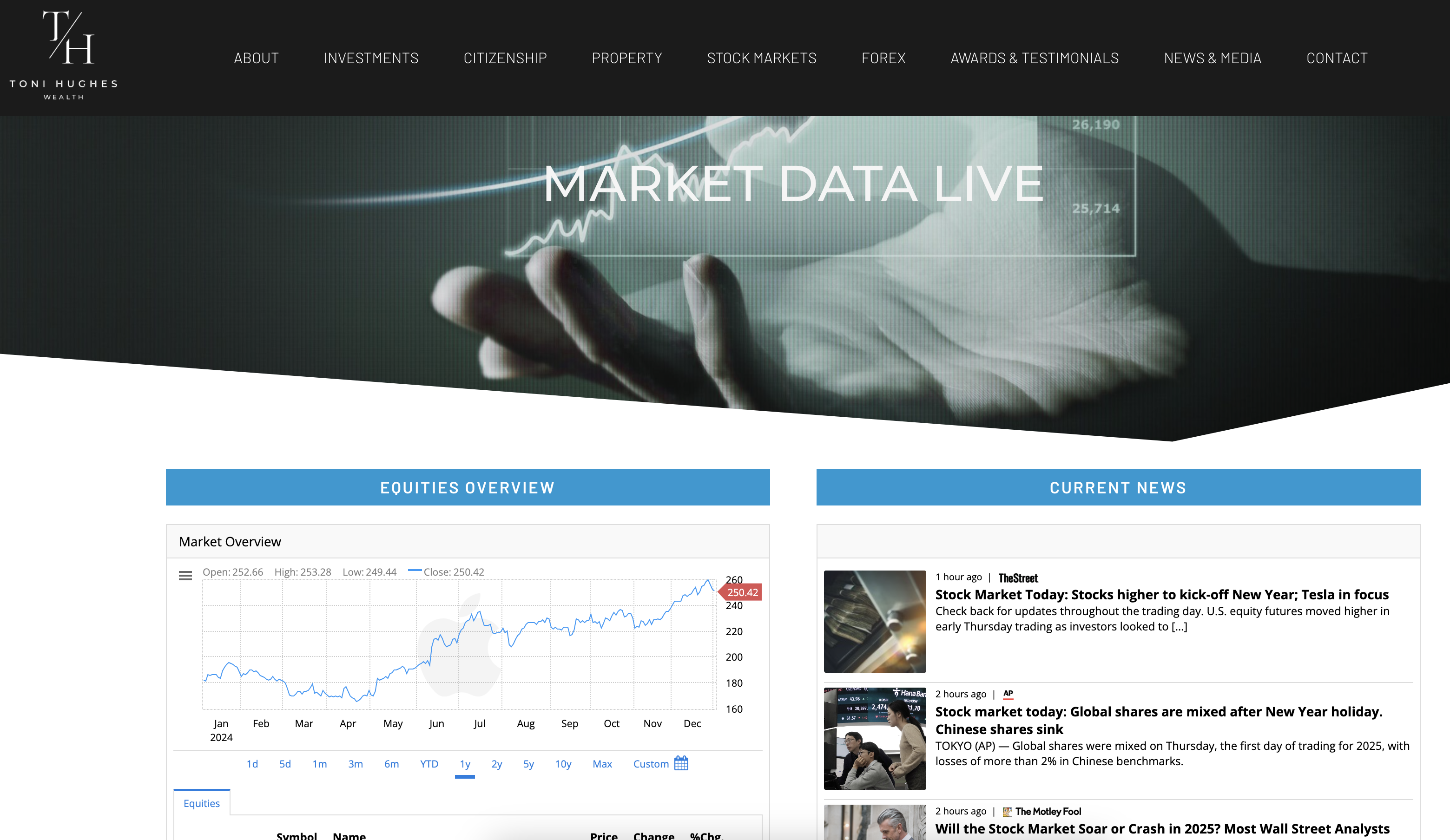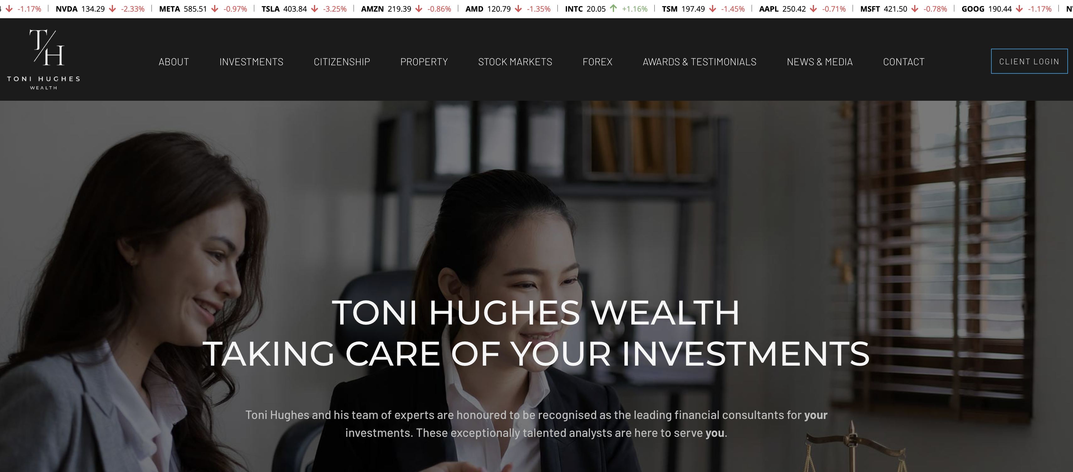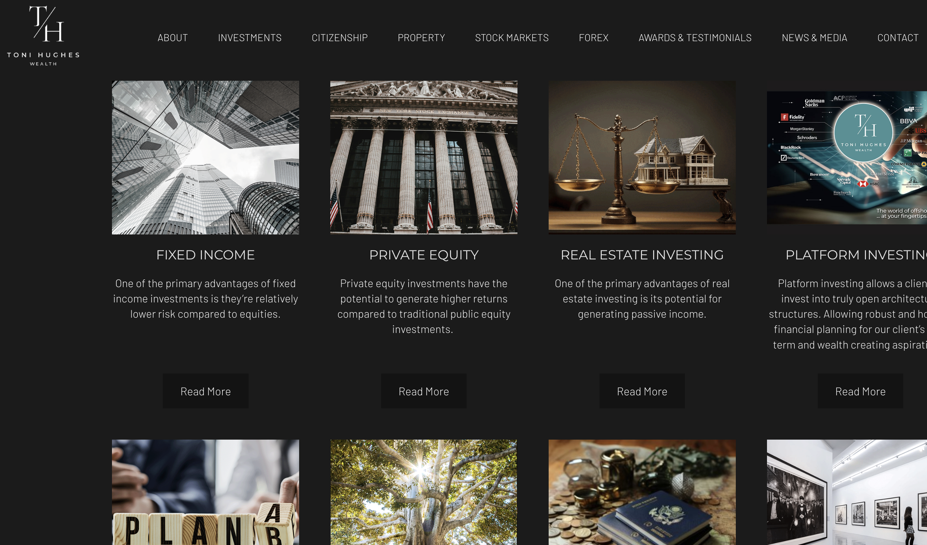 Custom Design: We created a sleek and modern design, ensuring the website reflects the professionalism and credibility of Toni Hughes Wealth.
